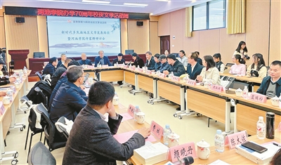 会上,区晓菲、覃展、牛依河、费城、谭为宜、钟纪新等多位与会代表,围绕学院文学发展、文学创作及如何突破等内容进行深入研讨和交流,回顾学院70年来写作人才培养成就,展望学院写作人才未来,表示会汲取河池多民族文化营养和浓厚的文化氛围,探索写作人才培养路径、符合时代与个人写作路径,继续努力创作,保持写作势头,创作出更多切合新时代发展的作品,为新时代添彩。