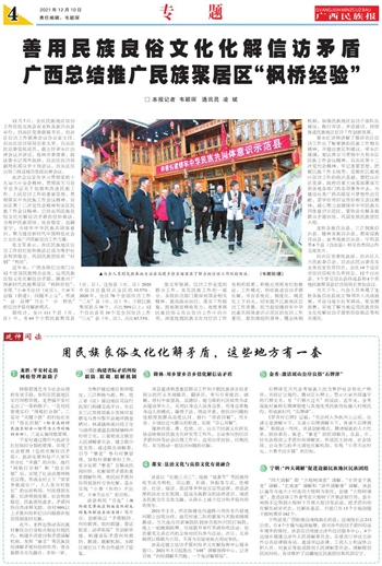 善用民族良俗文化化解信访矛盾 广西总结推广民族聚居区“枫桥经验”