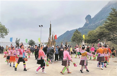 2月3日,农历正月初三,在融水苗族自治县白云乡林城村乌都屯,苗族同胞穿着节日盛装,以当地苗族习俗吹芦笙、跳芦笙舞等多种形式,庆祝新春佳节,今年也是该屯发展旅游产业迎来的第一个春节。