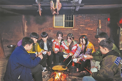 | ▲2月14日午夜时分,在融水苗族自治县白云乡瑶口村瑶口屯,瑶族姑娘小伙围坐在火塘边,打油茶、煮元宵面、蒸红薯……以独特的瑶族风俗共迎元宵佳节。(兰 堃/摄影报道) |