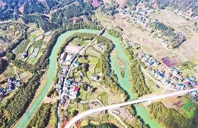 图为2月14日航拍的柳州市融安县大坡乡岗伟村的通村道路。