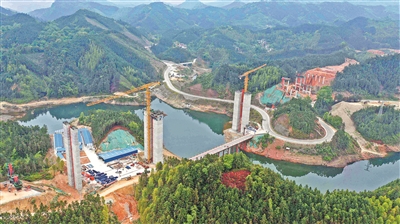 4月12日,在柳州市融水苗族自治县四荣乡三江村下四屯,中国一冶融从(融安县到从江县)高速公路项目经理部工人在建高速公路。融安至从江高速公路(融安至安太段)项目建设为期3年,总投资81.55亿元,预计2023年底竣工。融从高速公路施工在崇山峻岭间,是真正的逢山开路、遇水搭桥。高速公路全线将建设11条隧道、38座桥梁,桥梁、隧道占比58%,施工难度大。待全线贯通后,可进一步加强广西、贵州、广东三个省(区)之间的交流。