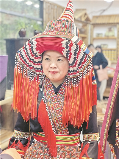 后来有知情者告诉我,刘德敢和李素芳相识的媒人是著名民俗摄影家梁汉昌先生。大约是2010年,梁先生带小刘到贺州八步拍摄瑶族服饰,结果一上瑶山小刘就被两样东西给深深吸引住了。一件是美丽善良活泼可爱的瑶家妹子李素芳,另一件是美妙的瑶家“打油茶”。是美人加油茶让这个来自百色壮乡的小伙子对瑶家留下了极深的印象,久久无法忘怀。当时,李素芳中专毕业后就渴望走出瑶山,去看看外面的世界,而她母亲李小莲则是瑶族非物质文化遗产传承人,作为母亲一直希望自己的女儿能够“女承母业”,接棒传承好这门珍贵的手艺。然而,瑶绣做工精细复杂,要做好一件工艺品往往需要花费很长的时间,多数年轻人都不愿意干这种周而复始枯燥无味的细活。