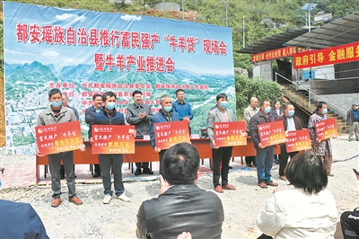 据悉,富民强产“牛羊贷”是都安瑶族自治县为巩固拓展脱贫攻坚成果同乡村振兴有效衔接,打通惠农服务“最后一公里”的又一创新举措。为有效解决养殖户“贷款难、贷款贵、担保难”问题,都安围绕“政府引导、市场主导、龙头带动、群众参与、金融拉动、保险保障”的产业发展理念,以户为单位,以农户增收和打造“百亿牛羊”产业为工作目标,发挥政府资金的引导和杠杆作用,撬动金融年投入不少于5亿元,为当地从事牛羊养殖、牧草种植、牛羊肉加工及销售,且生产经营活动达一年以上的农户、个体工商户或其他经济组织提供“牛羊贷”。该产品通过政银合作,由参与的金融机构向县内依法合规经营、收益稳定、信用评级高、有牛羊产业发展意愿,并具有完全民事行为能力的农户、个体工商户及其他经济组织发放不超过30万元、期限最长不超过3年(含)的免抵押免担保的贷款。同时,对符合条件从辖区内金融机构获得“牛羊贷”贷款的农户,给予全额贴息支持。