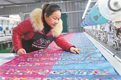 新春伊始,融水苗族自治县各企业陆续复工复产。锦绣苗山刺绣公司就业帮扶车间里一片繁忙景象,工人们开足马力赶制订单,力争实现首季“开门红”。