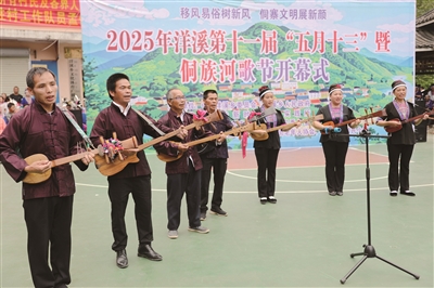 近日,三江侗族自治县洋溪乡举办第十一届“五月十三”暨侗族河歌节,当地群众以民俗巡游、歌舞表演、河歌对唱、百家宴等丰富形式,倾情展示当地多彩文化,聚力推动民族文化传承发展。
