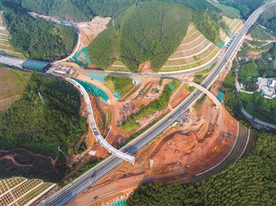 连日来,在梧州市长洲区倒水镇大垌村的苍容高速互通建设现场,工人们正在加紧施工。该项目建成后,将进一步完善广西高速公路网,形成环广西快速通道,促进珠江—西江经济带发展,对进一步对接融入粤港澳大湾区,构建广西“南向、北联、东融、西合”的全方位开放发展格局具有重要意义。图为项目正在加紧建设。