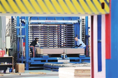 8月19日,融安·广西香杉生态工业产业园的香杉板材生产企业内,工人们正加紧赶制订单。作为“中国香杉板材之乡”与“中国香杉木生态板之都”,融安县在深耕国内市场的同时,加大海外业务拓展力度,推动产业持续升级,助力乡村振兴。图为工人在生产线上作业。(谭凯兴 摄影报道)