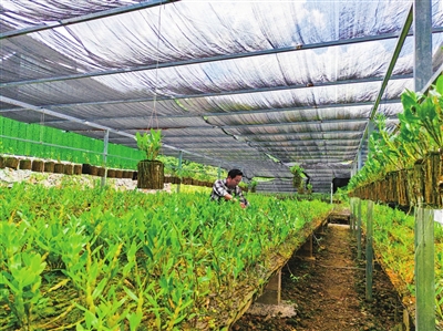 近年来,金秀瑶族自治县依托得天独厚的自然生态优势,促进瑶药种植、药材加工、生态旅游等多业态协同发展。目前,全县种植瑶药累计达20万亩,创新实践“山上种药、山下制药、山中康养”的发展思路,将生态优势转化为实实在在的发展动能和民生福祉。截至2024年底,金秀瑶医药大健康产业链综合产值已突破12亿元,500多家经营主体带动5万余人吃上“生态饭”,不断擦亮“绿水青山就是金山银山”实践创新基地金字招牌。图为8月27日,在该县长垌乡道江村,村民正在瑶药种植基地管护石斛。