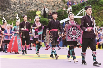 8月23日,三江侗族自治县同乐苗族乡举办归东野生葡萄文化节,当地苗、侗等各族群众和游客以非遗服饰巡游、现场直播展销、文艺表演等多元形式,展现民族地区特色产业发展成果,构建农文旅三产融合发展新格局。图为各族群众欢庆葡萄文化节。