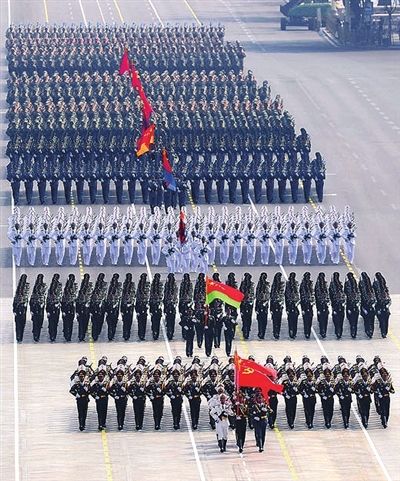 8万羽和平鸽展翅高飞,8万只气球腾空而起,《歌唱祖国》的激昂乐曲响彻整个广场。习近平等向各界群众频频致意,广场内外汇成一片欢腾的海洋。