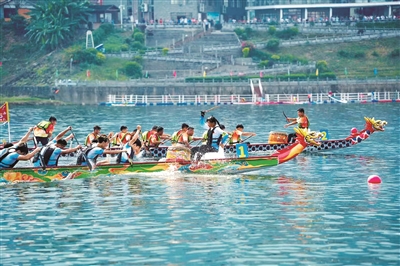 ⑤ 在2025年中国龙舟公开赛(广西·昭平站)比赛现场,两支队伍在激烈竞赛。