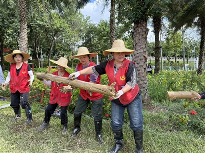 ⑥ 志愿者正在搬运洪水过后留下的杂树枝。