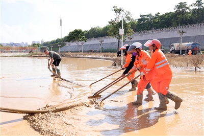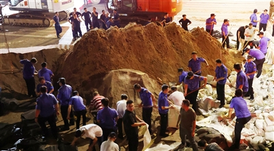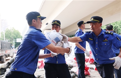 城管、环卫、街道办、民兵预备役等力量也闻“汛”而动,大量沙石、混凝土等物资迅速运抵一线,超过1500名抢险人员投入战斗。