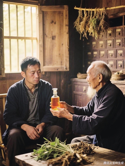 这期间有个真实的故事:在一个大山深处,有个小村庄,村庄里有位80多岁的老人,一辈子用祖传草药为人治病,每天都有很多人找上门排队求医。老钟为了公司的事情,连续劳累,感觉体力欠佳,抱着试试看的心态,找到老人。老人给了老钟一瓶自己泡制的药酒,叮嘱每天就喝一小杯。半个月后,老钟感觉身体大有好转,一些旧日的困扰——例如失眠——已悄然无踪。老钟和老人成了忘年交,每次路过,都要进家坐坐,渐渐两人到了无话不谈的地步。