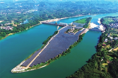 近年来,融水苗族自治县古顶电厂在原有年均发电量2.25亿千瓦时的基础上,盘活江心洲闲置用地建设光伏电站,年发电量达1893.46万千瓦时,为乡村绿色低碳、环保发展注入清洁动能。图为11月15日拍摄的阳光映照下的和睦镇古顶光伏电站。