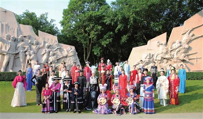 11月24日,2025年广西文化旅游发展大会重点活动之一——新壮裳品牌全球时尚发布会在百色半岛公园正式启幕。此次活动以“民族非遗+现代时尚”为主题,推动“指尖百色”传统技艺走向国际舞台。 图为参加活动的人员合影。