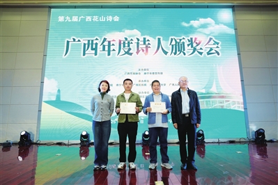 “登高望远·八桂新篇”主题诗歌朗诵会暨广西年度诗人颁奖会在南宁师范大学五合校区举行。湖南锈才获评第九届广西花山诗会“年度诗人”,周楷棋获评第九届广西花山诗会“年度新锐诗人”。