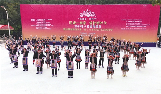 12月3日,贺州市八步区黄洞瑶族乡举行2025八桂民俗盛典暨桂粤湘黔滇民间文艺交流活动,来自五省(区)六市的各族同胞欢聚一堂,交流文化,畅叙友谊,共同唱响“民族一家亲筑梦新时代”的主题,在文艺交流中铸牢中华民族共同体意识。图为活动现场。(廖祖平 摄影报道)
