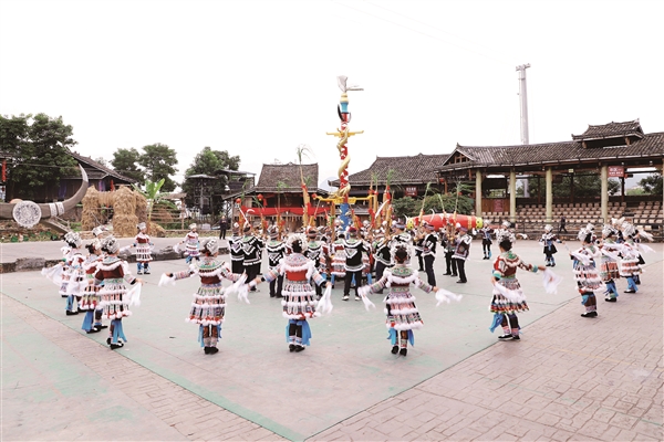 12月6日,苗族传统节庆“苗年”活动在融水苗族自治县梦呜苗寨景区内举行。古老庄重的民俗仪式与喜庆互动的场面交织,吸引区内外游客纷至沓来,在体验苗家风情的同时,绘就出各民族交往交流交融的生动图景。图为芦笙踩堂演出。
