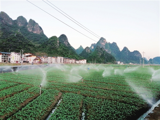 日前,在巴马瑶族自治县甲篆镇巴马茂雄生态康养农业产业园内,高端蔬菜基地正进行自动化撒水作业,采摘的蔬菜已陆续投入市场。该农业产业园采取“公司+基地+合作社+农户”模式,帮助300余户农户年均增收近700万元,同时年接待游客约30万人次,带动周边村民发展文旅康养产业。