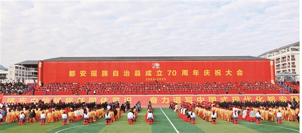 该县成立70周年庆祝活动,既是对过往辉煌的深情礼赞,更是迈向未来的豪迈启航。站在新的历史起点上,都安各族群众如石榴籽般紧紧抱在一起,以铸牢中华民族共同体意识为主线,继续发扬艰苦奋斗、团结拼搏的精神,共同描绘产业兴旺、生态宜居、乡风文明、治理有效、生活富裕的壮美画卷,为强国建设、民族复兴伟业贡献都安力量。(黄 云 张新怡 文/图)