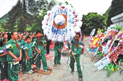 4 nyied 2 hauh, ndaw Lezsw Gijnenbeih Yenz Hingh’anh Yen yiengjhwnj sing go gozgoh goksasa, Hingh’anh Yen fanh lai boux ganbu ginzcung、bouxbing caeuq hagseng soemh fwn daeuj daengz gizneix caeq hungzginh lezsw, gyoengqde doeg Mauz Cwzdungh sihcwz 《Cizliz·Cangzcwngh》, soengq gyongxva、swxva hawj hungzginh lezsw, baiq lezsw, dauqniemh gwzming senhlez vih Cungguek gwzming guh gvaq gij cingzcik ronghrwg haenx, aeu neix daeuj biujdap doiq senhlez aeueiq gingqcungh.