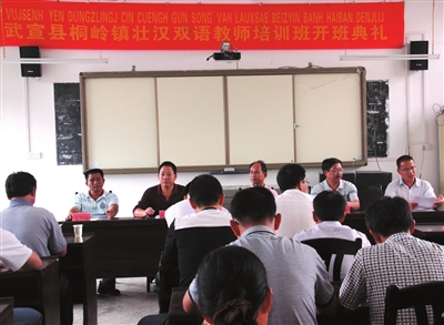 Vih sawj Cuengh Gun song vah saw sonhag guh ndaej engq ndei, 10 nyied 15 hauh, Vujsenh Yen Gyauyuzgiz youq ndaw yienh Dungzlingj Cin hai beizyinbanh son Cuengh Gun song vah saw lauxsae. Aen beizyinbanh neix banh daengz nienzdaej, hwnjdangz seizgan gungh miz 10 ngoenz. Daengx cin gak siujyoz yaucangj、gyaudauj cujyin caeuq Cuengh Gun song vah saw lauxsae daengj daihgaiq 40 vunz camgya beizyin. Baez beizyin neix cujyau son “minzcuz yijvwnz cwngcwz”、 “Sawcuengh gocwngz byauhcunj”、 “Sawcuengh gihcuj cihsiz”、 “Sonfap Cuengh Gun song vah saw”. Ndawde miz lingjdauj, hix miz boux guh Sawcuengh caixhangz haenx daeuj guh beizyinbanh lauxsae. Dungzlingj Cin Sawcuengh fujdaujyenz Luz Mingzdiz dang beizyinbanh banhcujyin. Yienh gyauyuzgiz fugizcangj Lij Cangcinh、yienh Sawcuengh yozyau yaucangj Cinz Fucau camgya haiban denjlij caemhcaiq gangjvah. Ndaw doz dwg haiban denjlij yienhciengz.
