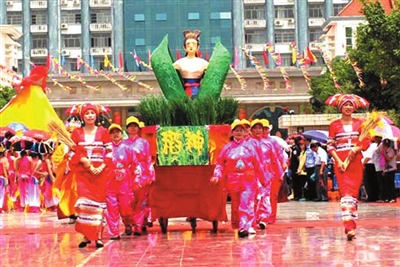 Ndaw ngoenzciet, gyoengq hekyouz ndaej bae cetcunz yawjngonz gij byaraemx doenghnaz yienghnduj dangdieg, bae camgya aen hawfwen hoenghhwd haenx, dingq canghfwen youq gwnz bez doiq fwen; bae humx yawj caeq saenzhaeux、foux lungzfiengz、foux fagcanjrin hung daengj fungsug minzcuz biujyienj gig lumj yienghciuhnduj haenx; lij ndaej bae cetyouz diuzgai gijgwn “naz”, cimz daeuhfouh Duhgez、bingjmeg samgak Bucenz、gaeq Dinghdangh daengj gijgwn haekfeih dangdieg, doengzseiz caemh ndaej yawj suek faengx、daem et、guh ceiz caeuq rap haeux gvaq giuzfaexdog、aeu fwngz fad haeux、gwnz dah vad ruz bengcag daengj gak cungj gak yiengh doxdax mizyinx haenx, danghnaeuz mwngz simhumz, cix ndaej haeujbae camgya doxdax, yiengjsouh faenh angqyangz ngoenz- ciet hoenghvuengh ndeu.