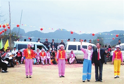 Gyoengq beixnuengx song aen mbanj neix cungj dangq ngoenz ciet neix dwg ndaw bi aenciet ceiq hoenghhwd ndeu, ngoenz neix gij lwgmbwk haq okbae haenx cungj daiq gvan daiq lwg dauqma ranzmeh, gij vunz- mbanj youq baihrog guhhong haenx hix maranz caemh cingj baengzyoux、doengzsaeh caez bae guh’angq, ndaw ranz hek yied lai cawjranz caemh yied sim’angq. Baenzneix, ngoenzde sam seiq fanh vunz daj ndaw cin caeuq cibgeij aen yanghcin henzgyawj nangq daengz Sanglinz、Majsanh、Lungzanh、Yunghningz daengj dieg daeuj haenx caenx dwk ndaw mbanj ndaetfwdfwd lumj ngoenz- haw nei, nauhyied hoenghhwd raixcaix.