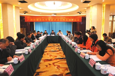Aen hoih neix nyinhcaen gvancez le gij cingsaenz youqgaenj Cungh- yangh caeuq Daengx Gih Hoih Hong Minzcuz caeuq《Gij Yigen Cunghgung Cunghyangh Gozvuyen Gvendaengz Gyagiengz Caeuq Gaijcaenh Youq Baihlaj Hingzsi Moq Hong Minzcuz Haenx》, yenzgiu busuj bi 2015 hong Vahcuengh Sawcuengh suijbingz gaujsi. Cunghgoz Minzcuz Yijvwnz Fanhyizgiz、Swcigih Gyauyuzdingh、Swcigih Minzyijveij、gak si minzyijveij mizgven bumwnz boux lingjdauj, gih raeuz boux lauxhangz Sawcuengh、boux gaujseng daibyauj gungh 50 vunz camgya. Youq gwnz hoih, Swcigh Minzyijveij doengbauq le hong Gvangjsih Vahcuengh Sawcuengh suijbingz gaujsi sawqdiemj gihbwnj cingzgvang, Nanzningz Si Minzyijveij、Bwzswz Si Minzyijveij、Cungzcoj Si Minzyijveij faenbied gaisau bonj si guh hong Vahcuengh Sawcuengh suijbingz gaujsi sawqdiemj gingniemh caeuq aeundaej gij cingzcik haenx, gawjlaeh gangjmingz, guh Vahcuengh Sawcuengh suijbingz gaujsi gij cozyung nem miz yiyi haenx. Gyoengq boux lauxhangz、gaujseng daibyauj doiq 2012-2014 nienz gij hong Gvangjsih Vahcuengh Sawcuengh suijbingz gaujsi sam bi sawqdiemj guh le cienzmienh cungjgez caeuq bingzguj, daezok yigen caeuq genyi, vih guh ndei hong Vahcuengh Sawcuengh suijbingz gaujsi ok geiqmaeuz. Gyoengqde nyinhnaeuz, 2012-2014 nienz sam bi hong Vahcuengh Sawcuengh suijbingz gaujsi dabdaengz muzdiz caeuq gunghcoz muzbyauh bonj dingh, vih doidoengh Vahcuengh Sawcuengh suijbingz gaujsi ciengzdaiva comzrom le fungfouq gunghcoz gingniemh, genyi gibseiz doigvangq, cienzmienh buhai.