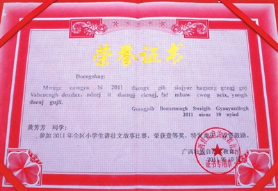 2013 nienz, aen hagdangz neix ban bizyezbanh gauj Vahcuengh Sawcuengh, hagseng gauj ndaej gig ndei. Baez gaujsi neix youz Swcigih Gyauyuzdingh cujciz, ndaw hagdangz ban bizyezbanh hagseng cungj camgya, gyoengqde gauj ndaej ndei, cienzbouh gizgwz, cienzbouh ndaej youhsiu, ceiq sang ndaej 98 faen, ceiq daemq ndaej 87 faen.