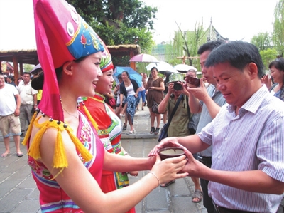 Bineix gaiq daih’it baeuqroxdoh ngaizgairaez gungh baij daizlaeuj bak daiz, moix daiz cujyau miz Mbanjcuengh haeuxnaengj haj saek、bitgangq、 nohgouyuz daengj byaek daegsaek dangdieg, cien lai boux betfueng hekyouz camgya hoihlaeuj, daihgya doq gwn gijgwn ndei、 laeuj ndei Mbanjcuengh, doq yawjngonz minzsuz Bouxcuengh biujyienj, doengzcaez angqhoh Mbanjcuengh daengx bi fungsou, hohfuk guekcoj ngoenz maenh’ak gvaq ngoenz.(Vangz Gozsun/黄国顺)