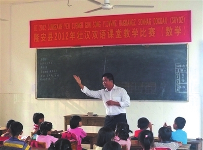 Youq duenh yivu gyauyuz, Luswz Siujyoz cizgiz damqra diuz- roen ndei song saw vah sonhag. Aenvih hagseng youq yozcenzbanh couh hag le sing yinh diuh, hag rox baenzlawz gyoep Sawcuengh lo, ndigah daj it nienzgaep hainduj, lauxsae couh son gyoengqde gyoepdoeg gij cih ndaw govwnz, sawj gyoengqde roxyiuj eiqsei doenghgij cih haenx, doengzseiz haeujsim baenzlawz doeg gij cih neix, cugciemh roxyiuj gij eiqsei daengx coenzvah, caiq giethab gij eiqsei Vahgun, sijsaeq roxyiuj gij neiyungz daengx bien govwnz. Daengz ngeih nienzgaep le, cingqsik yungh Vahcuengh Vahgun sonhag. Seizneix lauxsae cujyau hawj hagseng rox yawj、rox doeg、roxyiuj govwnz, caemhcaiq youq ndaw faenzcieng ra vwndiz, gaendwk dwg doeg cihmoq、swzmoq, hag rox cujswz caeuq cauxgawq. Hagseng sam nienzgaep doxhwnj cujyau hag sij cozvwnz, hag doeg Sawcuengh gangj Vahcuengh, hag rox baenzlawz yungh Sawcuengh fanhoiz Sawgun. Vahcuengh Vahgun song cungj saw vah doengzcaez sonhag, sawj cingzcik hagseng ndaej daezsang gig vaiq, 2013 nienz Luswz Siujyoz miz 13 boux doengzhag ndaej bingzguh Lungzanh Yen caeuq Nanzningz Si “sam ndei hagseng”, 2015 nienz youh miz 7 boux doengzhag ndaej bingzguh yienh、si “sam ndei hagseng”, 2015 nienz haggeiz cawzcin cwzsi, daengx hagdangz miz 22 boux hagseng yijvwnz、suyoz cungj gauj ndaej 90 faen doxhwnj.