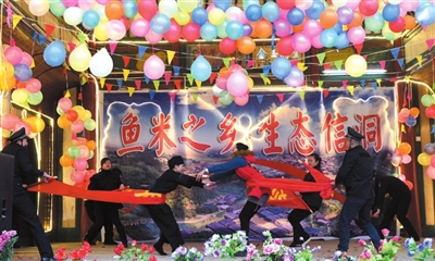 1 nyied 21 hauh, Sanhgyangh Dungcuz Swciyen Yangzhih Yangh Sindung Cunh banh “yezyej” hozdung, 19 aen doihvwnzyi daj daengx yangh 9 aen hingzcwngcunh daeuj haenx, yungh golaux Dungcuz、 dohyeh、 siujbinj caeuq gofoux minzcuz daengj vwnzyi cezmuz lai cungj lai yiengh, haeujlaeg senhconz cingcinj bangcoengh ranzgungzhoj、 bingzan hwnjguh caeuq minzcuz doxgiet daengj giengz nungz leih nungz cwngcwz, gikcingz ciengqyiengj yaem’wenq angqcoux ciengmoq angqyangz huzndei neix.