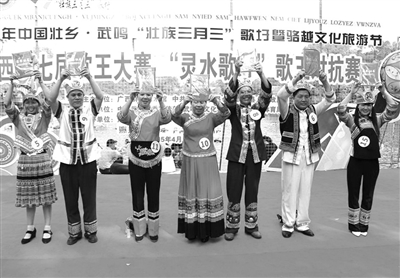 “Gyanghaet singjndiu couh eu fwen, bouxboux dwen naeuz nuengx bak lai. Daxmeh seng nuengx cix bakgvai,diuzmingh daiq daeuj eu baenz ciuh.” Youq Siengcouh Yen Majbingz Cin Lungzyangj Cunh, vunzlai yienghneix hingzyungz lwgmbwk Bouxcuengh Cinz Lanzbinh, de daj lijiq couh haengj yungh Vahcuengh eu fwen, mboujdan doenggvaq eu fwen ndaej haeuj dangj, lij camgya Guengjsae fwenvuengz doxdax gvaq, ndaej aen cwnghauh“fwenvuengz Guengjsae”. Guengjsae Densidaiz、ndaw si、ndaw yienh sinhvwnz meizdij caijfangj de lai baez, vih coicaenh Majbingz Cin baenz aenmbanj Fwencuengh guh le haujlai hong, ok le haujlai rengz.