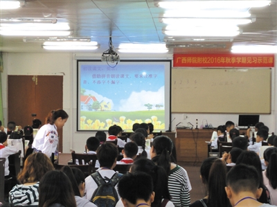 11 nyied 14 hauh, gyoengq hagseng ban Cuengh Gun Gvangjsih Swhyen Cuhdwngj Gyauyuz Yozyen 2015 gaep siujyoz gyauyuz conhyez, youz Lij Yen、Bungz Ginj lauxsae daiqlingx, bae daengz Gvangjsih Swhfan Yozyen fusuz sizyen yozyau, guh gyauyuz gensiz hozdung aen singhgiz ndeu.