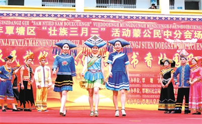 Ndwen 3 ngoenz 28, Bi 2017 Gveigangj Si Cinzdangz Gih “Sam Nyied Sam Bouxcuengh” Hozdung Mungzgungh Minzcungh Faenhoih- ciengz youq ndaw hagdangz Mungzgungh Yangh Minzcuz Cuh- cungh hoenghbanh. Baez hozdung neix dwg youz Cinzdangz Gih Gyauyuzgiz cawjbanh, Cinzdangz Gih Minzcunghgiz、Vwnzlenz、ranghhag Mungzgungh bang banh, Mungz- gungh Minzcungh guhbanh. Hozdung guh miz baijyienj laex couxhek Bouxcuengh (fwen couxhek、gingq laeujndwq haeuxcid)、sibgvenq fug- sug vwnzva Bouxcuengh senhconz、baijlangh son’gyauq cwngzgoj vwnz- va minzcuz hagdangz、baijyienj yisuz vwnzva Bouxcuengh、baijyienj hanghmoeg dijyuz minzcuz、cimz gwn gijgwn haekfeih Bouxcuengh caeuq aen gyangjco lauxhangz gangj cihsiz vwnzva Bouxcuengh daengj. Cinz Gvanghcin yanghcangj daengj 15 boux beixnuengx Daizvanh daj Vahlenz Yen Suisui Yangh daeuj haenx caemh youq Gveigangj Si Minzcunghveij cujyin Cinz Hungz、Gveigangj Sih Daizban cujyin Cwng Cujveij、Cinzdangz Gih gihcangj Cangh Gingjlenz daengj bouxdaeuz- hung guhbuenx lajde caez caeuq gyoengq lauxsae hagseng Cinzdangz Gih 8 aen Cuengh Gun song saw vah sonhag saedniemh hagdangz camgya le baez hozdung neix.