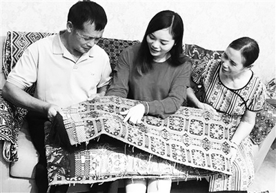 广西妹子巧手编织五彩壮锦梦 研发特色原创产品