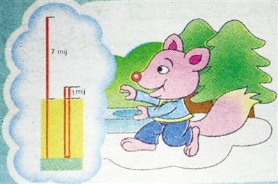 Duzmui Mauzmauz dawz diuzcag guh dan diuz cug aendoengj daeuj daek raemx, duzdouq Diuqdiuq dawz diuzcag guh baenz sueng daeuj daek raemx. Duznou Mihmih siengj ok diuz daez suyoz mizyinx he: Diuz cag he, dan diuz bungq deng naj raemx, youq rog bakcingj lij lw 7 mij; guh baenz sueng bungq deng naj raemx, rog bakcingj lij lw 1 mij. Bakcingj liz najraemx geijlai mij?