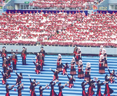 12 nyied 10 hauh banringzgvaq, Aen Daihhoih Angqhoh Gvangjsih Bouxcuengh Swcigih Laebbaenz 60 Hopbi youq Gvangjsih Dijyuz Cunghsinh hungnaek gawjhengz. Youq gwnz daihhoih angqhoh guh le vunzlai yienjheiq aeu《Seizdaih Moq Haenqheiq Guengjsae Moq Gyaeundei》guh cawjdaez. Yienjheiq aeu“vahaij coux beixnuengx”guh yinhyoz baihnduj, faen baenz“ranzmbanj hung huzndei”“Guengjsae moq gyaeundei”“seizdaih moq haenqheiq”3 aen bouhfaenh. Ceiqlaeng, daengx ciengz haenq ciengq《Ciengq Guekcoj》, hohfuk guekcoj mwnhoengh hwngvuengh、Guengjsae coglaeng engqgya gyaeundei. Baez yienjheiq neix guh le diemj lai cung, miz 3 fanh lai ganbu ginzcung daj 56 aen minzcuz、ndawbiengz gak gyaiq daeuj comz youq giz ndeu, caemhcaez angqhoh gih raeuz laebbaenz 60 hopbi, aeu go ciengq haenh Guengjsae moq gyaeundei、 seizdaih moq hungmbwk.