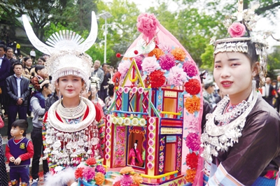 Ndwen 4 ngoenz 7, Sanh- gyangh Dungcuz Swciyen Fuluz Myauzcuz Yangh banh ciet bauqva cienzdoengj minz- cuz “sam nyied sam”gaiq daih 135, geij fanh boux beixnuengx gak cuz Guengjsae Gveicouh daengj doxcomz giz ndeu, yungh ciengj bauqva、minzsuz cunzyouz daengj hozdung lai yiengh angqhoh cietndei. Ciuq cam rox, ciet bauqva “sam nyied sam” Fuluz Myauzcuz Yangh daj mwh Genzlungz hainduj, liz seizneix gaenq miz 200 lai bi.