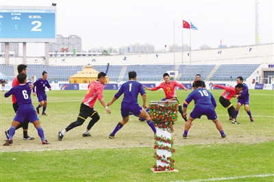 Bonjbauq siusik(Cau Dwzfeih Liengz Cingz) Ndwen 9 ngoenz 14 banhaet, Gaiq Daihcib’it Daengx Guek Siujsoq Minzcuz Cienzdoengj Dijyuz Yindungvei doxciengj bauqva ceng mingz daih’it youq Cwngcouh Dayoz banh. Buenq ciengz gonq aen doih Baekging 1∶0 lingxdaeuz, aen doih Gvangjsih boux ciengj ak、duicangj Liuz Yungjli deng sieng roengz ciengz. Buenq ciengz laeng haiciengz mbouj nanz, aen doih Baekging youh ciengj ndaej aen bauqva ndeu, 2∶0. Aen doih Gvangjsih mbouj doeknaiq saekdi, buekmingh ciengj, doenggvaq baez doxgap ndeindei ndeu ciengj ndaej aen ndeu, riengz dwk youq mwh hoenxgung doiqfueng famhgvih, ndaej vut baez bauqva roengz lamz ndeu, beijfaen 2∶2. Gya seiz 6 faen cung song mbiengj mbouj ndaej saek faen, lij dwg 2∶2, doeklaeng doenggvaq vut bauqva roengz lamz faen saw hingz, aen doih Baekging vut 5 baez vut deng baez ndeu, aen doih Gvangjsih vut 4 baez vut deng 2 baez, doeklaeng aen doih Gvangjsih 4∶3 ciengj hingz aen doih Baekging, souj maenh mingz daih’it, aeu ndaej it daengjciengj faenliengh ceiq naek gaiq minzcuz yindungvei neix.