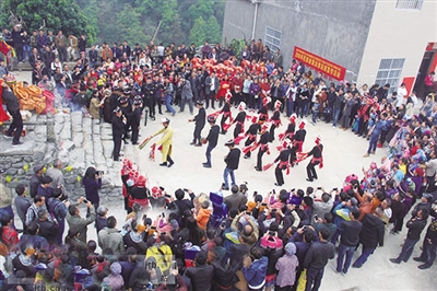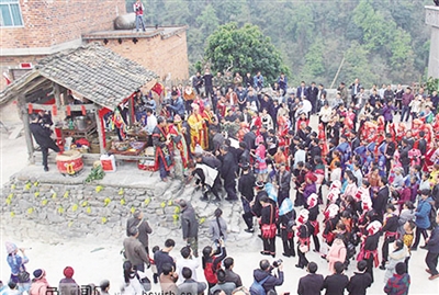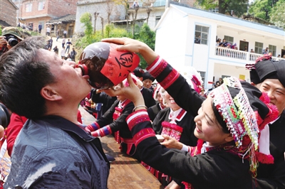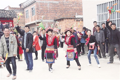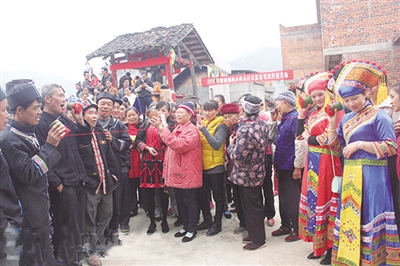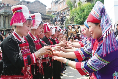 Doengxhaemh, ciengz diuqfoux baiq Yahyauz ceiq nauhyied haenx couh hainduj lo. Haidaeuz dwg song duz saeceij vifung okdaeuj gonq, sing gyonglaz、sing hemqndei、sing riu、sing bauqciengh gyukgyadgyad yiengj hwnjdaeuj, haprwenz youq aen lueg hoengqvangvang neix. Gaendaeuj, cib lai boux vunzsai cangqak ndang daenj gij buhvaq Yauzcuz lai cungj saek caeuq yienghsik haenx, daep gij mauhngeg lai cungj lai yiengh bae cang baenz Yahyauz. Gyoengqde fwngz rag fwngz humx baenz aen gvaengx hung ndeu, fid fwngz、vangh ga miz siengq miz yiengh dangqmaz, riengz fuengyiengq aen cung byaij cienq dwk mbouj dingz, doq eu fwen doq diuq hwnj foux cienqgien vuenheij daeuj. Bouxyawj yienh- ciengz caemh riengzdwk ciengq hwnjdaeuj:“Cingj Yahyauz gingq- gyaez yienjlingz, baujyouh lwglan cangqcwt、bingzan!”“Cingj Yahyauz saenzswng nyokfuk, baujyouh fwn- raemx ndaej yinz, guek ak minz an!” Baez ciengq daengz diemj doxangq seiz, bouxyawj caez daihsing ciengq dwk hoizdap, gyoengqde nyinhnaeuz vunz ndaej hanhaemq cix dwg ndaej fukheiq lo.