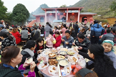 Geij bi neix daeuj, gij hozdung conzdungj miuhhoih youq daengx guek gak dieg cungj banh dwk nauhyied oen’oen, aen ciengzmienh miuhhoih Goengbaekdaeq Sangsiz caemh hoengh dangqmaz. Gij miuhhoih Goengbaekdaeq Sangsiz laeng ndwencieng coseiq cujyau miz gvaxbyaij、ciengj bauqva、bengcag、eu fwen、bau aendom、langhbaij sawsij mbawveh minzsug、baijok gij doxgaiq ndaej gwn miz daegsaek haenx、ngaizbakranz daengj lai cungj lai yiengh hozdung. Lij miz baenz buek vunzhek daj Bingzsiengz bonjdeih、Ningzmingz、Lungzcouh caiqlij Vet- namz daeuj ngonzyawj dem. Gij vunz dinfwngz dangdieg sien guh ndei song aen “bauqva baedyou” gonq, hozdung hainduj le, geijcib boux lwgmbauq itheij ram bauqva、diuq foux gyaeujgeizlaenz、roq laz roq gyong、 gingz fagcax Gvan’goeng、gingz aen daengloengz riengz diuzgai bae gvaxbyaij. Gij sing gyonglaz youq gwnzmbwn haprwenz bae, bauqrengh hix yiengj dwk goksatsat. Henz gai gyoengqvunz bouxcoz vunzlaux lwgnyez humx caenx ndaetfwdfwd, angq hemq gyukgyad, doxcanj cuengqcaeq bauqva baedyou, nauh- yied raixcaix. Baenz geij cien vunz youq Goengbaekdaeq siuyieng sax- caeq, mbaenjgouz baenz bi seiqgeiq cungj bingzan, fwnraemx ndaej yinz, biengzbingz an’onj, roxnaeuz mbaenjgouz miz lwglan lai、swngguen fatcaiz、mbouj bingh mbouj nanh daengj. Gij yizsiz neix heuhguh “mbaenj fuk”, daengz bi laeng miuhhoih lij aeu daeuj “ boiz fuk”. Gij vunz daeuj mbaenj fuk、boiz fuk haenx dingzlai gag dawz gaeqlix、byaek、laeuj daengj daeuj, caeq Baekdaeq sat le couh youq baihnaj aen miuh Goengbaekdaeq doxcomz, gaj gaeq cawj byaek, bet boux naengh guh daiz ndeu, gwn haeux gwn laeuj guh angq. Haenx deng vunz bonjdeih heuhguh “ngaizbakranz beksingq Goengbaekdaeq Sangsiz”.