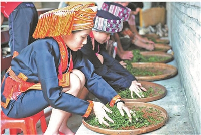 Cazloegbauj youq Gvangjsih dwg cungj cazndaem ceiq mizmingz haenx, gij lizsij de daengz seizneix gaenq miz 1500 lai bi, soqlaiz miz “nding、noengz、gaeuq、swnh” seiq cungj daegsaek riuzmingz lajmbwn. Gvangjsih Canghnguz Yen Loegbauj Cin bya sang mok lai、ndoengfaex mwncupcup, ndigah couh ndaej ok cungj caz daegbied neix. Gij dinfwngz guh Cazloegbauj youq Loegbauj Cin Mbanjbuyij、Mbanj- daemzbingz、Mbanjseiqliux、Mbanjleixcung、Mbanjsanhbingz、Mbanjgoengbingz、Mbanjcanz daengj dieg miz lai. Gij cangjguhcaz doengh aen mbanj neix aeu gij caz gyoengqde gag ndaem haenx ma guh yienzliuh, guhcaz hix yungh gij fuengfap conzdungj cinghseuq haenx guh, ginggvaq lai aen bouhloh couh ndaej guh ok gij Cazloegbauj saek ndingfwg、feih swnh gam sangj、miz gij feih hom maklangz daeuj.