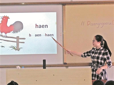 孩子是天生最富有挑战性,最不肯服输的,对比赛有一种特殊的兴趣。因此可以在班上开展“谁是最佳朗读员”等竞赛活动,还用多媒体直观生动的播放画面和悠扬舒缓的音乐,唤起孩子们无穷的乐趣,配乐朗读。给动态的画面配音等,以调动学生的积极性,参与性,从而促进学生朗读水平的提高。如在教学一年级《Beij Coengmingz》时,笔者采用了角色扮演的教学法,让学生分角色扮演duzdouq 和duzgoep,使学生身临其境,在壮文的语感得到了很好的培养。