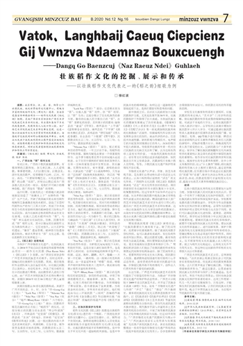 Vatok、Langhbaij Caeuq Ciepcienz Gij Vwnzva Ndaemnaz Bouxcuengh——Dangq Go Baenzcuj《Naz Raeuz Ndei》Guhlaeh