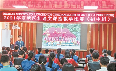 Gyawj geij bi neix doxdaeuj, Cinzdangz Gih roengzrengz hwngfat song vah son’gyauq, bibi cungj dinghngoenz guh doxdax son’gyauq Sawcuengh caeuq aeu Sawcuengh、Sawgun raiz faenzcieng. Hawj daihgya gag maij hag、yungh song vah, hawj gyoengqde daj “heuh gou hag”bienqbaenz “gou maij hag”, hwngfat aeu Vahcuengh、 Vahgun ma son’gyauq lwghag, caiq coicaenh minzcuz doxgiet, hawj gak minzcuz doxhuz doxndei, caez hwngfat guhhoengh.