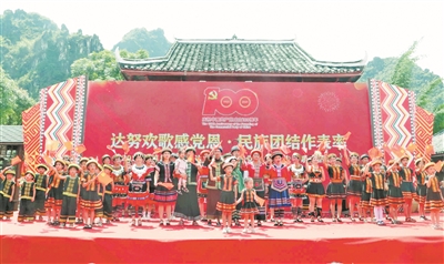 7 nyied 8 hauh,Sanglinz Mbanjyauz Cinhih youq Baizhungz Cunh Mbanjbaizbah guh baenz buek hozdung gvaq Cietdaznuj dem hoh aendangj laebbaenz 100 hopbi. Beixnuengx Yauzcuz ndang daenj buhvaq minzcuz youq bakmbanj ndaek gyong、 eu fwen、diuq foux Yauzcuz,baij laeuj baij gijgwn feih simhoengz ma daihhek. Yienhciengz miz gangj gojgaeq hoengz、ciengq diuzgo《Mbanjyauz Eu Fwen Haenh Aendangj》、 langhbaij “hwnj byacax”“roengz haijfeiz”daengj minzsug,yinx ndaej haujlai hekyouz daeuj guhcaemz、daej- niemh yienghndei Yauzcuz. Gak minzcuz vunzlai diegde caemh itheij gvaq aen ciet hoengh Yauz- cuz neix, gyoengqvunz doxgiet lumj ranz caen ndeu. Baezlaeng aen yangh neix yaek guhlaeg guhsaed gij cingsaenz gangjvah“7.1”Siz Ginbingz cungjsuhgi,laebdaeb doidoengh sonhag lizsij aendang haeuj gihcwngz,hwngfat canjnieb moq,caenhrengz guh- hoengh lajmbanj.